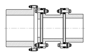 設計軸頭端面設計尺寸較小時,我們一般采用TBS型聯軸器,但是如果單膜片聯軸器滿足不了設計需要時我們應該采用TBM型聯軸器。TBM型聯軸器有雙膜片結構,能夠同時具有TBL型聯軸器的吸收能力。